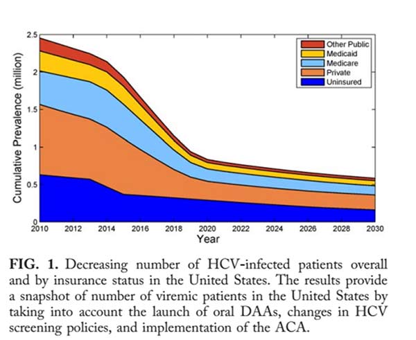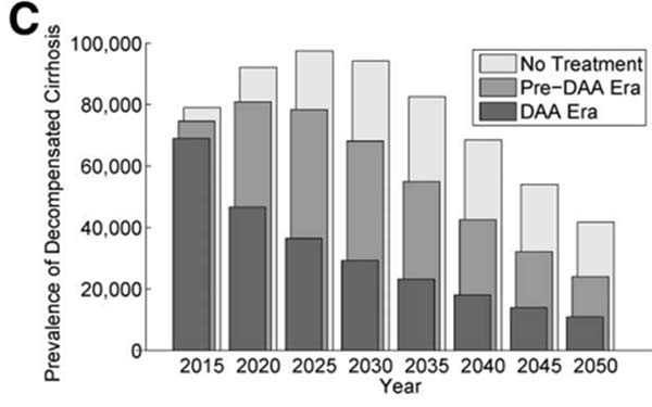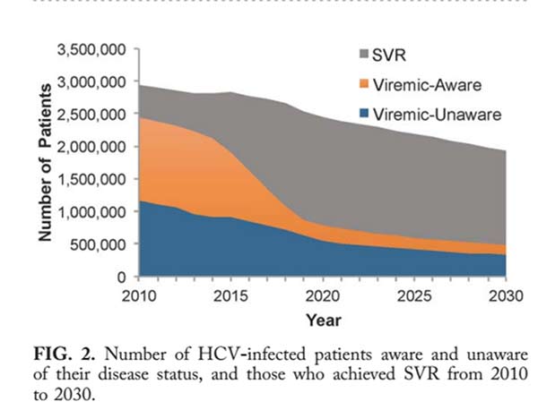 日前,有科学家通过一个预测模型,借助目前丙肝病毒治疗方案的效果(主要是在美国境内的临床数据)以及一些预测模型方面的修正,试图对目前这种依靠直接抗病毒药物为主要治疗方案的前景作出预测。结果也是相当惊人的,他认为到2030年,人类将会摆脱目前丙肝沉重的累赘。