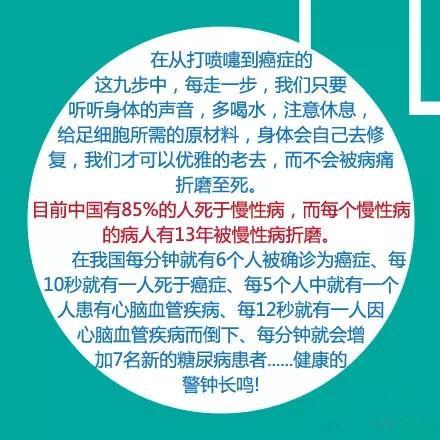 对于癌症,我们身体是有防御机制的,从“打喷嚏”开始到发展为“癌症”,期间会经历9个阶段——身体给了你9个防止癌变的机会,听听身体的声音,身体会自己去修复。
