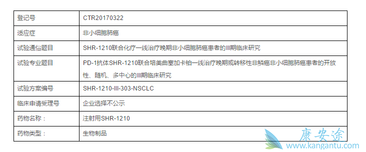该项随机、平行分组、III期研究计划在国内37个中心入组412例晚期非小细胞肺癌患者,目前的状态是“进行中、尚未招募”。SHR-1210成为国内开发进度最快的PD-1单抗。