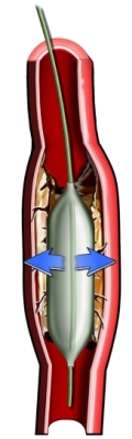 达到堵塞后,导管尖端的小气球将迅速充气并放气。这将拉动动脉开放。