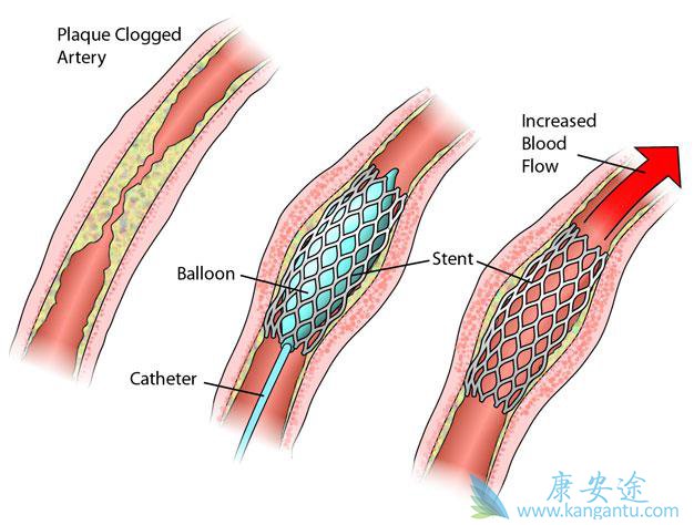 冠状动脉支架通常伴随球囊血管成形术。患者收到局部麻醉药物麻醉该区域后,进行心导管术,其中长的细管(导管)穿过放置在大腿上部的股动脉小切口内的护套。有时,将导管置于手臂的动脉中。