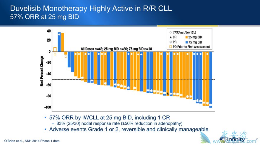 在II期DYNAMO研究的以前发布的数据中,duvelisib对无痛非霍奇金淋巴瘤(iNHL)患者的总反应率(ORR)显示为46%。