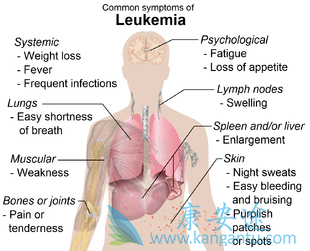 随着时间的推移,白血病细胞会挤出正常的血细胞。这可能会导致严重的问题,如贫血,出血和感染。白血病细胞也可以扩散到淋巴结或其他器官,引起肿胀或疼痛。